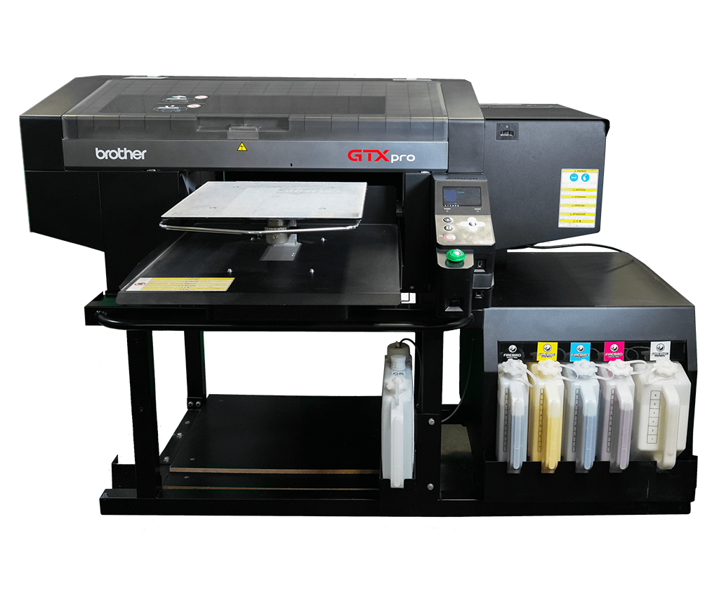 BROTHER GTX PRO je tlačiareň na priamu potlač textilu. Jeho konštrukcia a technologické vybavenie nám umožnuje tlačiť nepretržite 24/7. Táto technológia neprináša žiadne vedľajšie náklady na výrobu (osvit šablón, príprava filmov a pod.) Je efektívna pre malé množstvá potláčaného textilu: 1-100ks alebo pri motívoch, kde zákazník vyžaduje fotografickú kvalitu tlače.